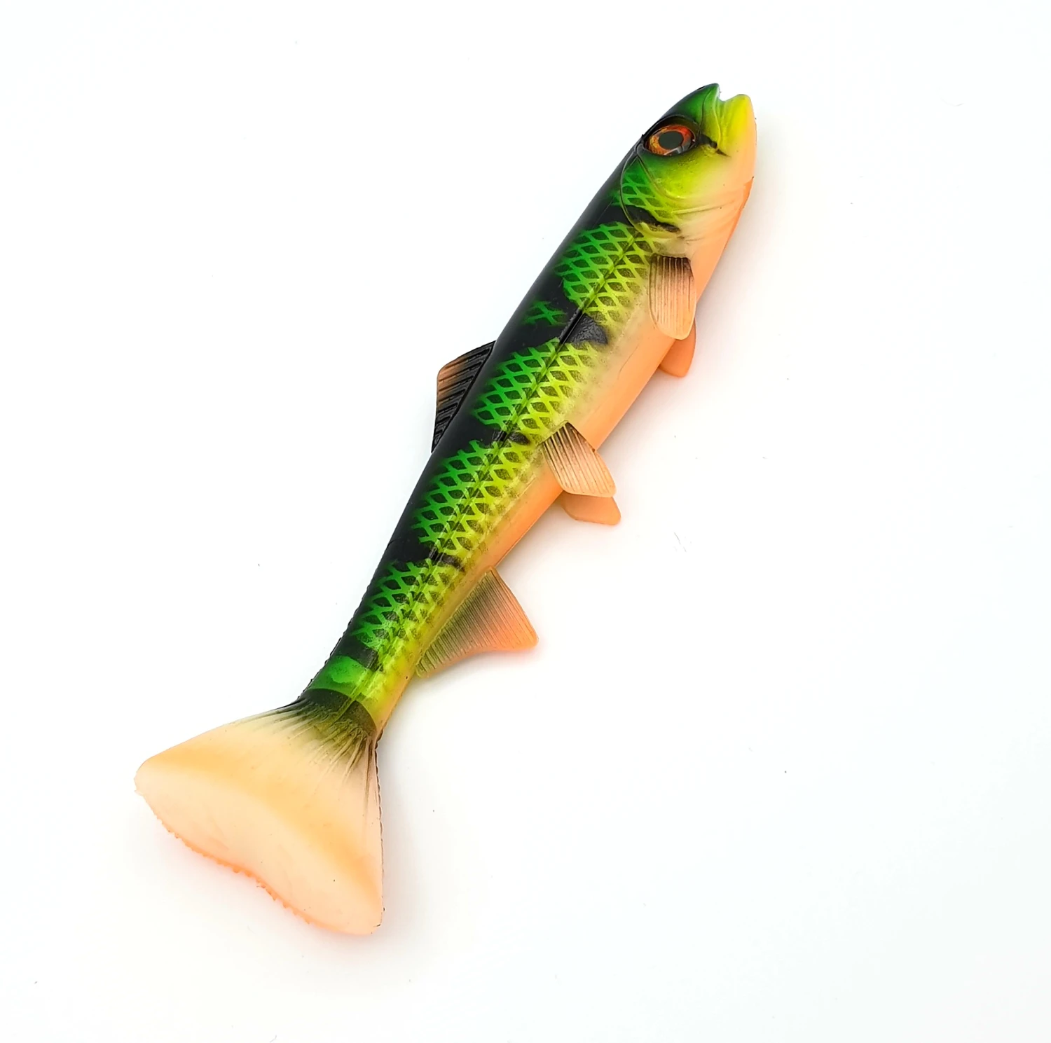 Na de weergaloze Hostagevalley Shad, is er nu ook de Troubletail. Het belangrijkste verschil tussen deze bizar mooie shad en de meeste softbaits op de markt is zijn actie. De ronde geometrie van de staart zorgt voor een relatief rechte loop met een hele lichte wobble, maar zonder de kenmerkende rol van bijvoorbeeld de Hostagevalley Shad. De staart zwaait echter geweldig hard van links naar rechts als een vluchtende prooivis en genereert onder water een enorme hoogfrequente drukgolf. Net als bij de Hostagevalley Shad zijn ook hier alle details zeer realistisch, zoals bijvoorbeeld zijlijn, uitgebreide kieuwdeksels, gelijmde 3D-ogen en vinnen. Echt een supermooie en geweldig vangende shad, met net een andere actie dan de gebruikelijke shads in je koffer!