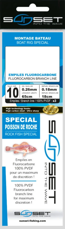 Sunset BDL Boat RS Competition Special Rock Fish Fluorocarbon Rig 0,26mm 65cm 3x 0,20mm (Size 8)
