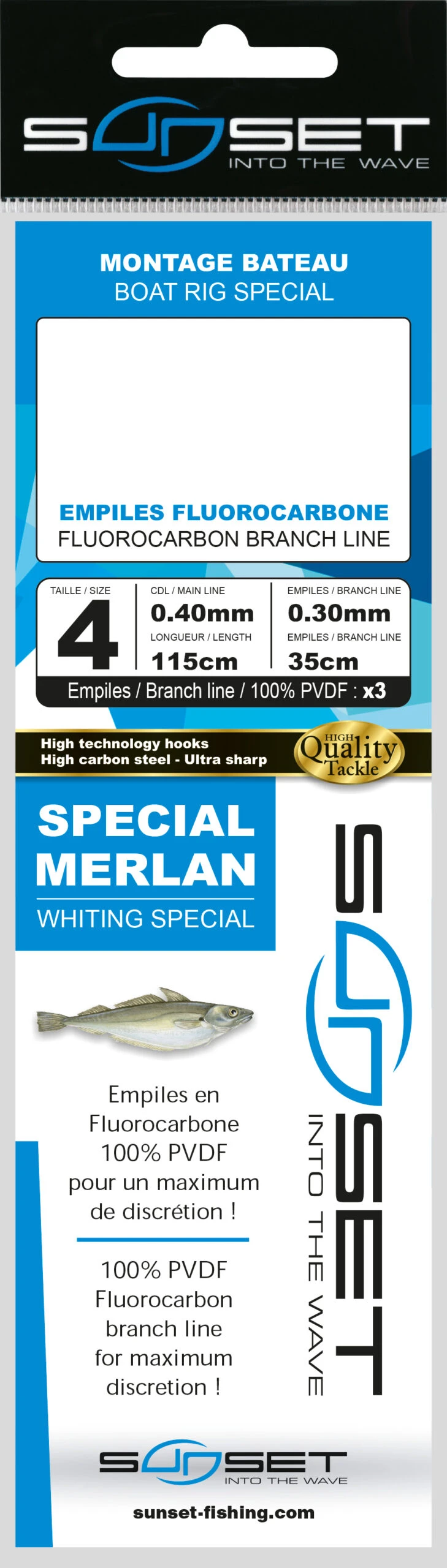 Deze kant en klare onderlijnen van Sunset brengen jou alle gemak en zekerheid. Ze zijn 1,6 meter lang en gemaakt van 100% fluorocarbon. Ze zijn eveneens voorzien van drie zijlijnen van 30cm en transparante kralen. Het voordeel van fluorocarbon is dat het nagenoeg dezelfde brekingsindex heeft als het water en daardoor zo goed als onzichtbaar is. Ideaal voor snel schrikkende vissen. Deze onderlijnen zijn er in verschillende uitvoeringen zodat er altijd eentje is die bij jouw type visserij past!
