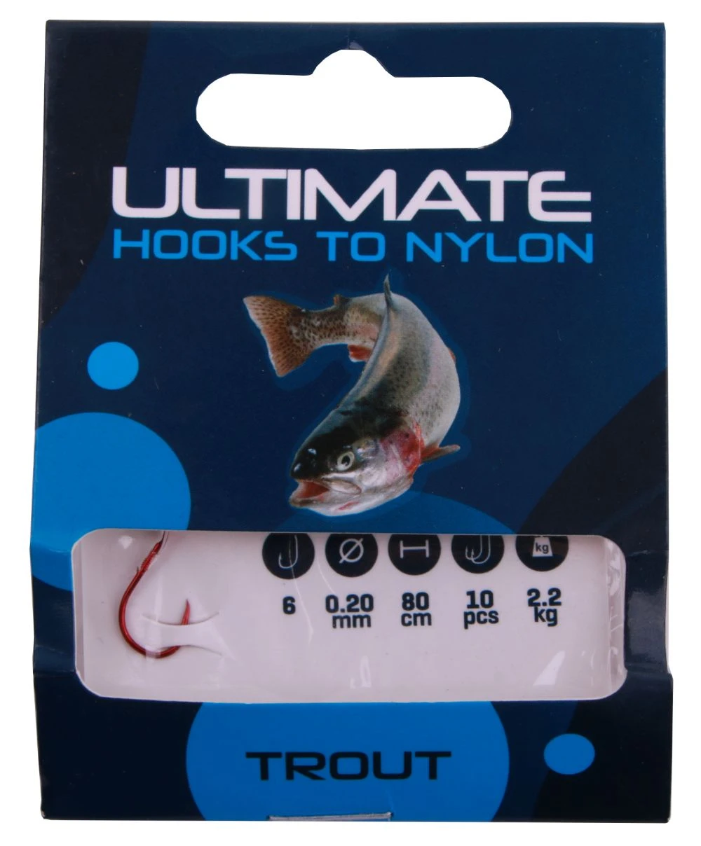 Ultimate Hooks To Nylon Trout Size 8 0,18mm 80cm 10pcs